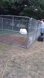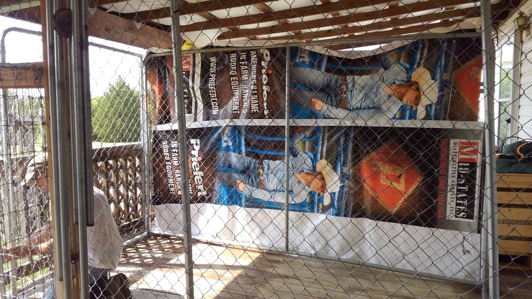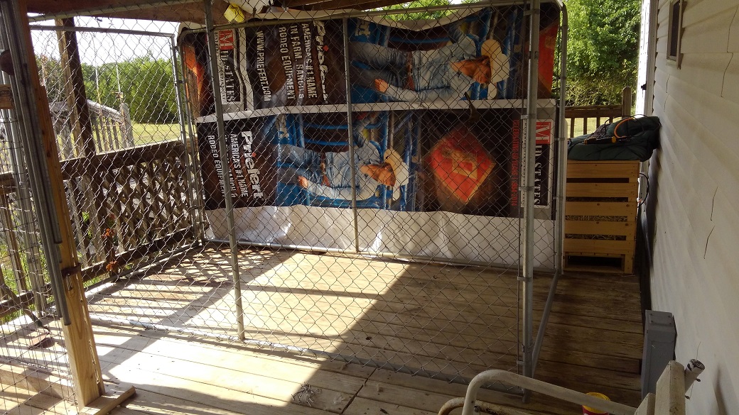 BACK DECK ENCLOSURE we use banners for wind breaks and shade on enclosures, they are very flexible.