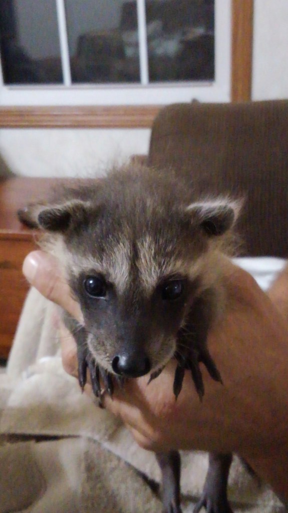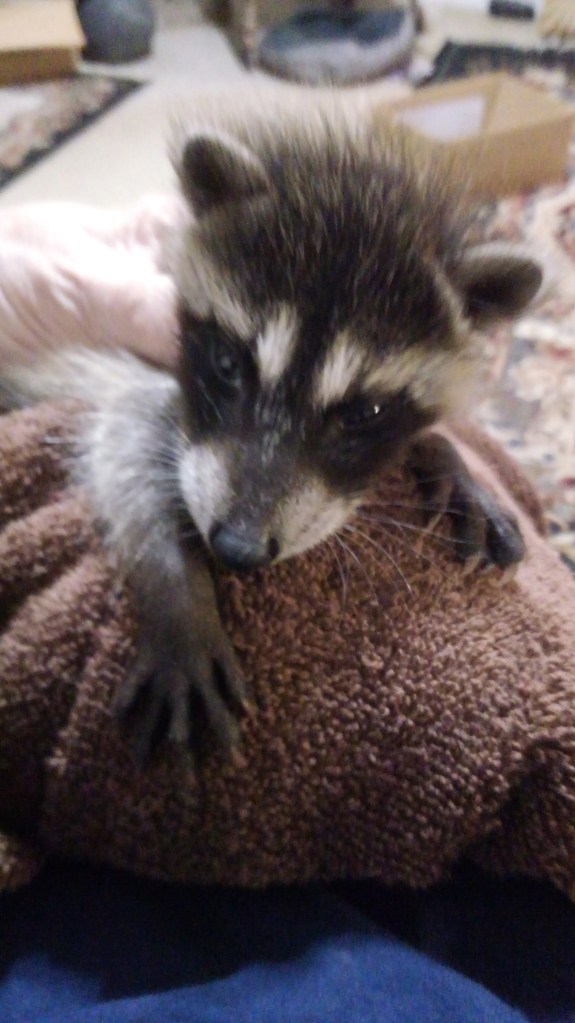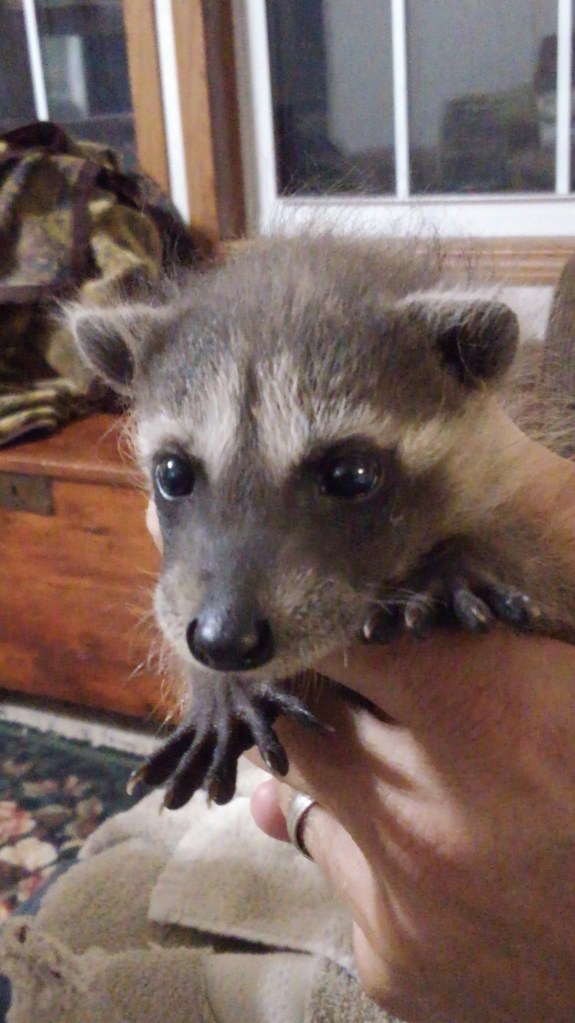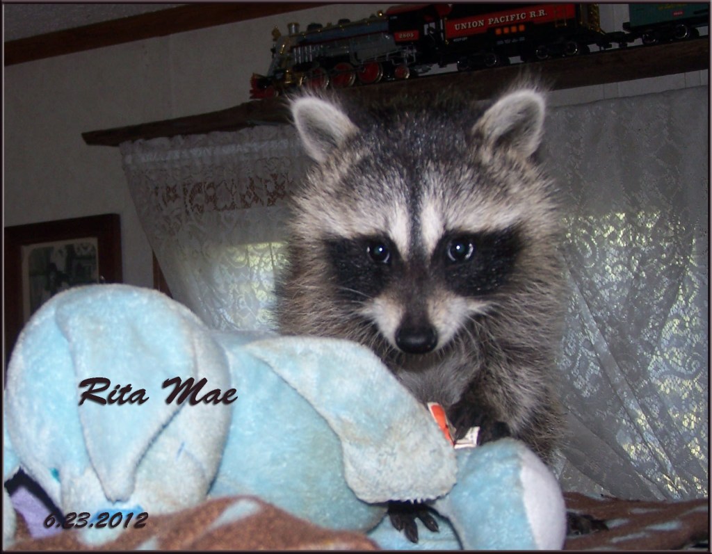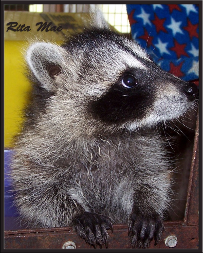 Rita Mae came to us as a helpless 10 oz baby with eyes and ears closed. She was our very first animal at Vista del Ray. Her disposition was very sweet and she soon became a favorite. She was our educational raccoon for 9 years, hers is quite a story. Rest in peace my Sweet Rita Mae……